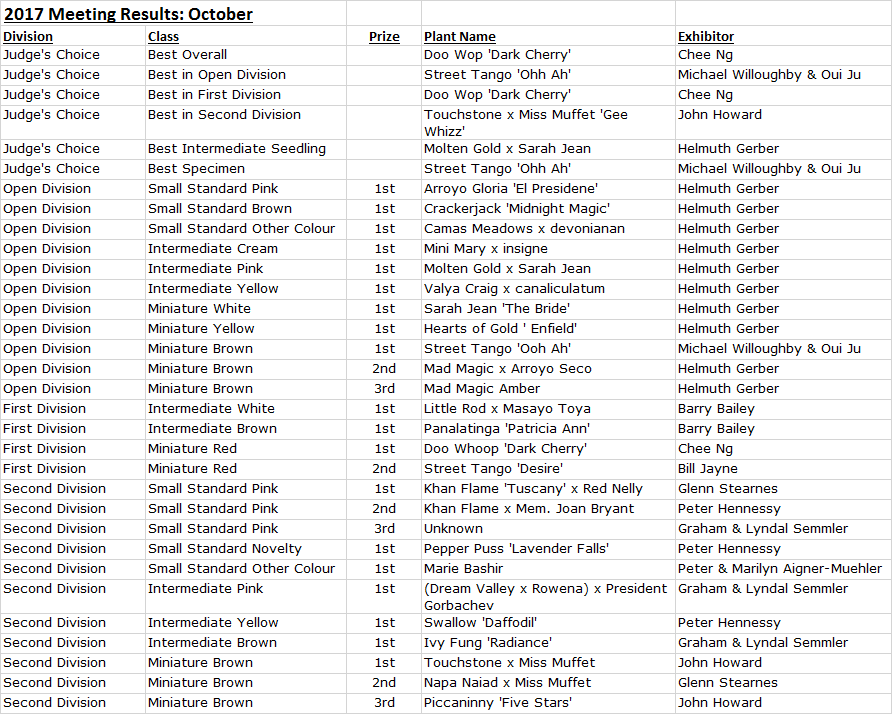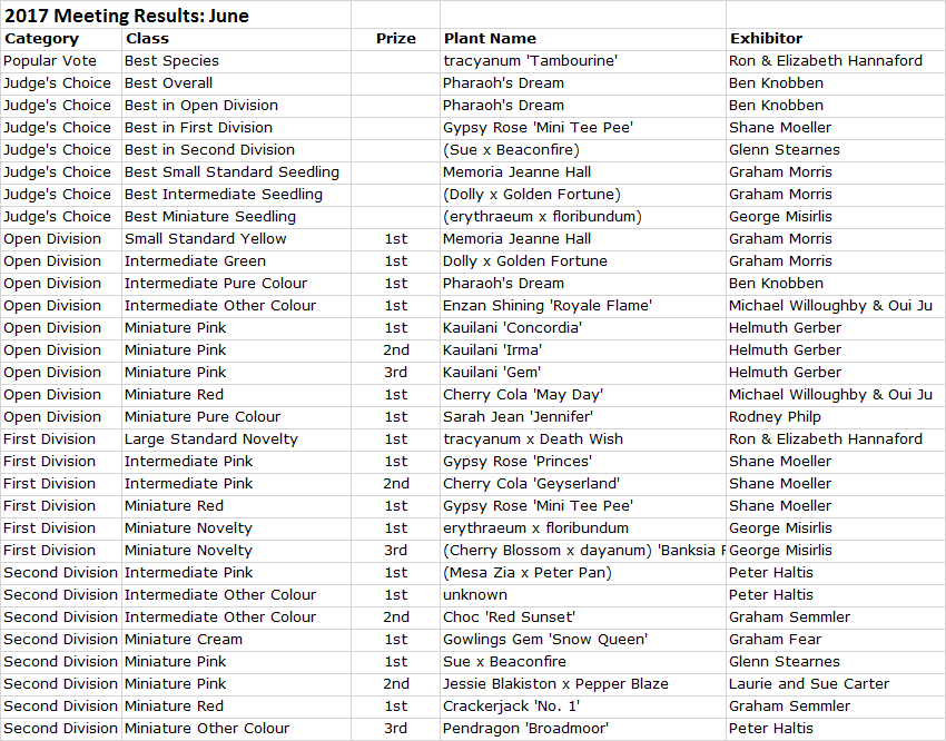 The club has interclub monthly competitions, February to November which are judged during the meeting and results announced at the end of the meeting.