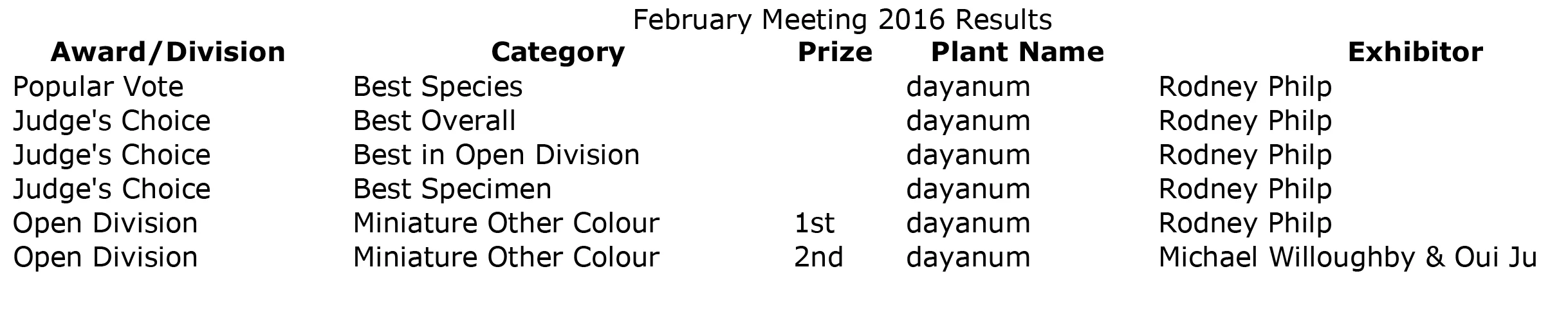Club Results 2016