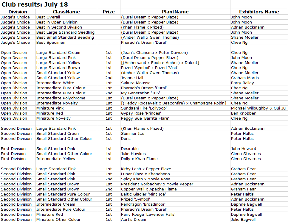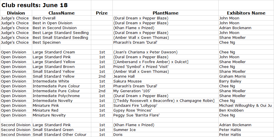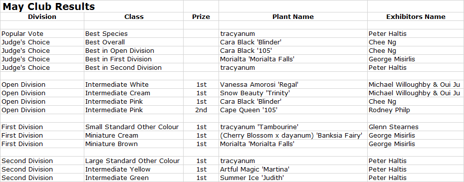This year club competitions didn’t start until May as plants were late to flower.