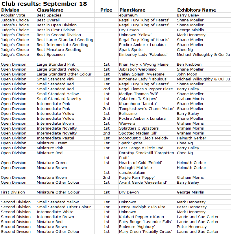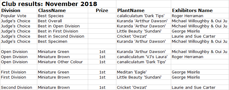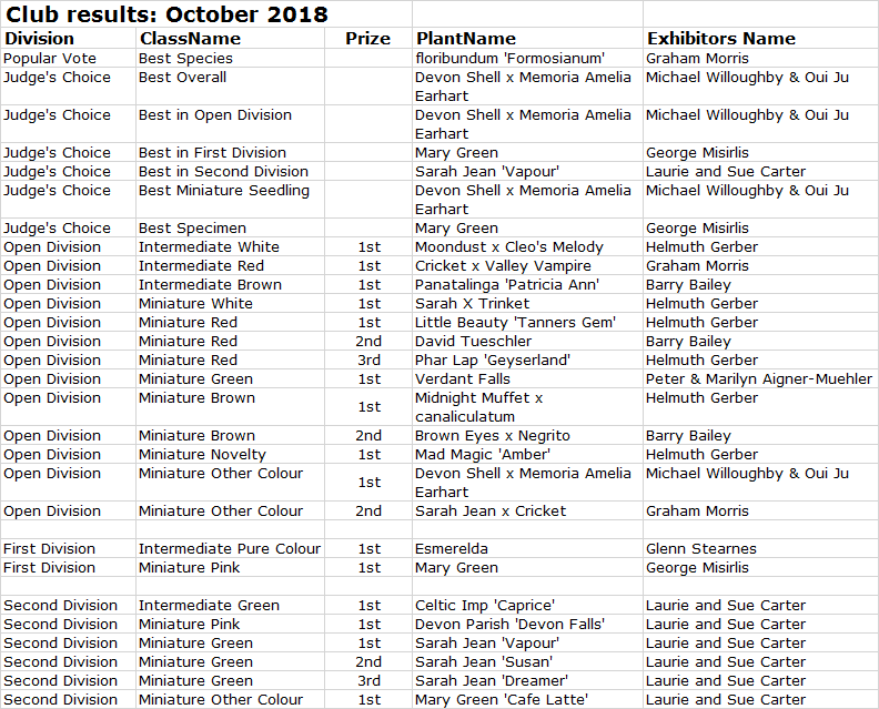 Club Results 2018